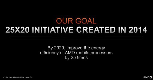 Cách đây 6 năm AMD đã từng đặt ra mục tiêu đầy tham vọng là Đến năm 2020, con chip Laptop của hãng sẽ có hiệu quả sử dụng năng lượng cao hơn 25 lần so với 2014, và hiện tại hãng đã làm được hơn cả mong đợi.