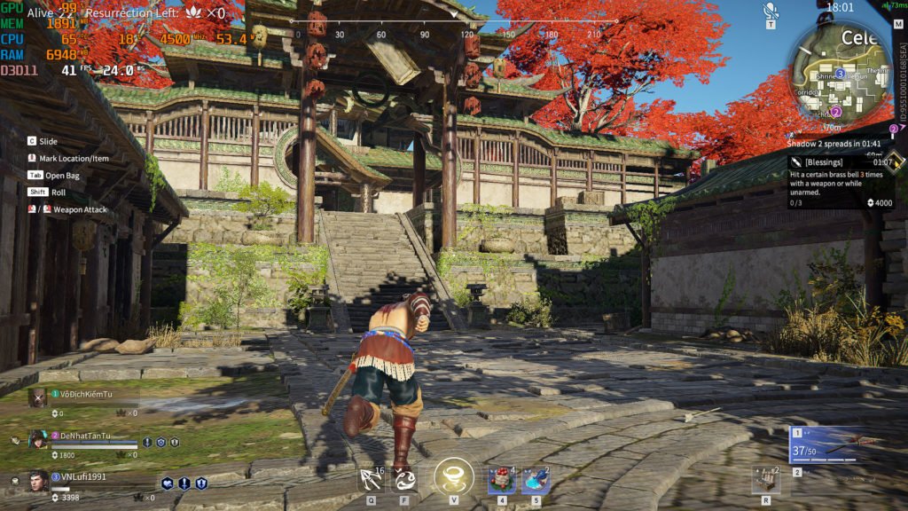Mình cũng trải nghiệm thử với tựa game online Naraka, cũng thể loại sinh tồn nhưng chém nhau thay vì bắn nhau, khá hot mới ra mắt gần đây, máy có thể chơi mượt ở mức thiết lập Full HD cấu hình thấp nhất. Dù tốc độ khung hình không cao nhưng trải nghiệm thực tế vẫn khá mượt, chơi tốt chứ không giật lắc khó chịu.