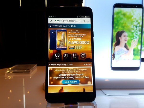 Galaxy J7 Duo sẽ được phân phối độc quyền trên kênh thương mại điện tử Lazada với nhiều dịch vụ độc quyền thú vị và mức giá ưu đãi đặc biệt nhân ngày mở bán. Từ ngày 27/6/2018, điện thoại Samsung Galaxy J7 Duo sẽ chính thức được mở bán độc quyền trên Lazada với mức giá đề nghị là 5.490.000 VNĐ. Riêng khung giờ trong ngày mở bán từ 11:00 – 12:00, người dùng có thể đặt mua trực tuyến sản phẩm với mức giá ưu đãi đặc biệt nhân ngày mở bán là 4.690.000 VNĐ.