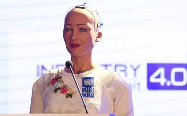 Robot là robot đầu tiên trong lịch sử được cấp quyền công dân như con người tại một quốc gia trên thế giới. Nhắc tới sự hỗ trợ của Cách mạng công nghiệp 4.0 tới việc thực hiện mục tiêu phát triển bền vững, Robot Sophia cho rằng, Việt Nam cần sáng tạo, lựa chọn sự khác biệt mới có thể khai thác, tận dụng tốt các cơ hội từ cuộc cách mạng 4.0 mang lại.