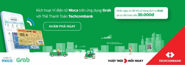 Ví điện tử Moca trên ứng dụng Grab đã chính thức liên kết với Ngân hàng TMCP Kỹ thương Việt Nam (Techcombank) trải nghiệm thanh toán không dùng tiền mặt một cách liền mạch và tiện lợi trên ứng dụng Grab.